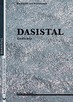 „Dasistal“ – der Assoziationshof, der den Titel dieses Gedicht-bändchens aus der Feder des imaginären Autors Bachwolf von Schenemar umgibt, eröffnet reichlichen Spielraum. Verbirgt sich dahinter ein Ort (Dasis-Tal), eine im Orient beheimatete Person, ein rätselhaftes Mineral, ein im Unterschied zum Prinzipal rein phantastisches Register des Orgelinstruments oder eine heimliche Hommage, vielleicht an Parzival? Auch an „Distal“ – von lat. distare – läßt der Titel denken, mithin an etwas, das von der (ja auch metaphorisch zu verstehenden) Körpermitte entfernt liegt – oder im Sinne der Deixis dem Reden über eine dritte Person entspricht. „Kristall“ klingt des weiteren darin an. Und wenn der Titel gleichwohl dessen Eigenschaft der Transparenz verweigert, tut sich wiederum eine neue Spur auf: „Das ist all“. Alles, was es für Bachwolf über die Welt von seinem distanten Blickwinkel aus zu sagen gab?